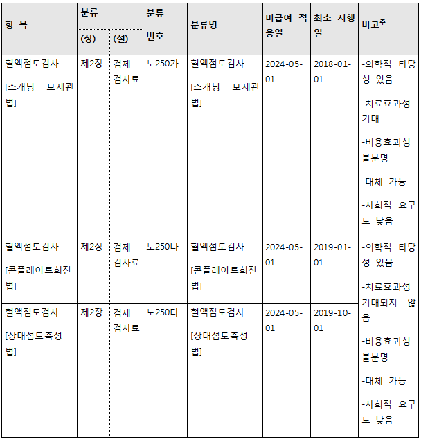 2.1 혈액점도검사: 선별급여에서 비급여로 전환 안내 (고시 제2024-69호)