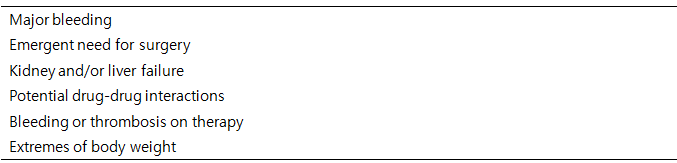 *Anti-Xa assays with low-molecular-weight standards can be used to exclude the presence of drug, but not to quantify drug level.