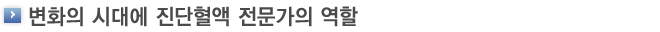 우리나라에서 혈액질환의 병태생리에 대하여 연구하는 역할은 혈액질환이 궁극적으로 발생하는 장소인 골수와 혈액을 검사하고, 종합하여 혈액질환의 최종진단을 맡고 있는 우리 진단혈액 전문가들에게 주어져 있는 것은 당연하다. 그러므로 우리 진단혈액 전문가들에겐 혈액질환의 연구를 통해 얻어지는 새로운 의학적 지식들을 원스톱으로 바로 진단혈액 표지자나 검사항목으로 발전시킬 수 있는 장점이 있다. 이런 장점을 경쟁력으로 우리나라 진단혈액이 의학발전에 기여하고, 세계의료를 선도하여 궁극적으로 질병을 극복하는데 기여하는 것이 변화의 시대에 우리 진단혈액 전문가들에게 부여 된 역할로 생각된다.