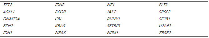 표5. CMML에서의 타겟 염기서열검사에 포함되어야 할 유전자