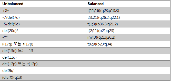 표3. MDS의 증거로 볼 수 있는 세포유전학적 이상소견