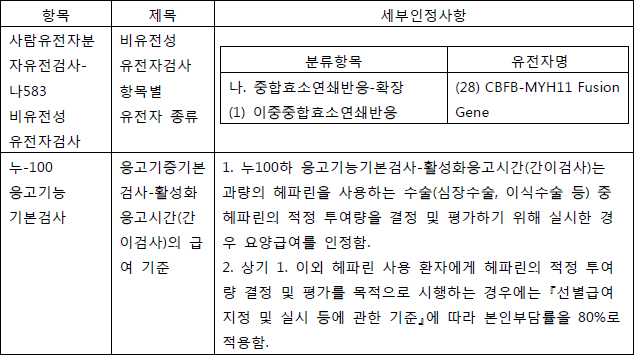 1. 신설 및 변경된 급여목록: 요양급여의 적용기준 및 방법에 관한 세부사항 일부개정에서 아래와 같이 신설되었습니다.