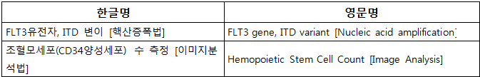 - FLT3 유전자, ITD 변이 [핵산증폭법]검사는 급성골수성백혈병의 예후를 예측하는데 사용할 수 있는 검사로 PCR-capillary electrophoresis를 이용한 검사방법입니다.