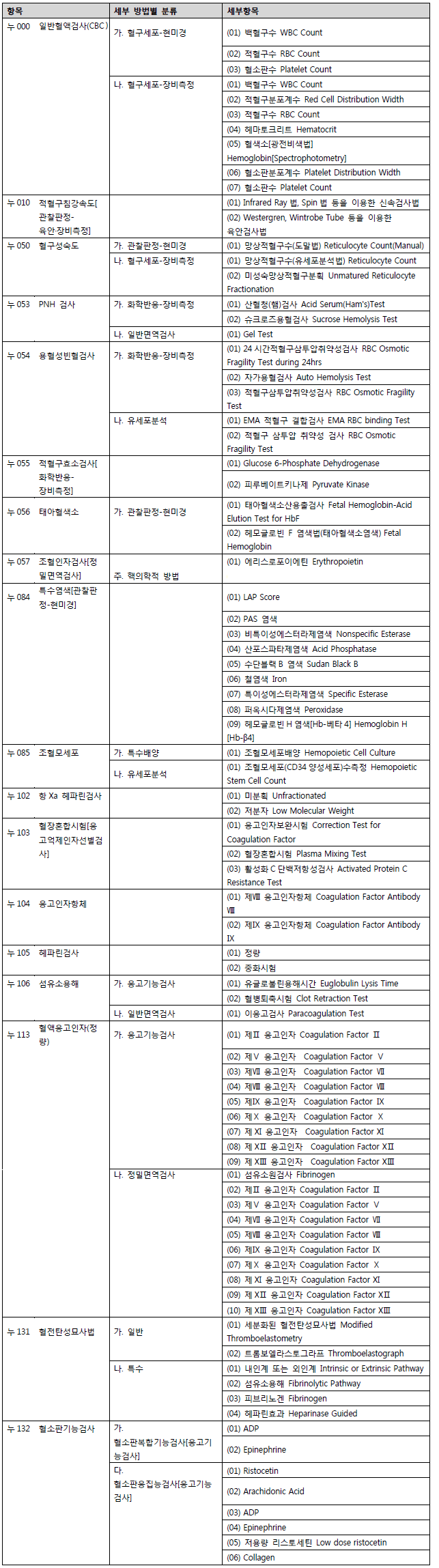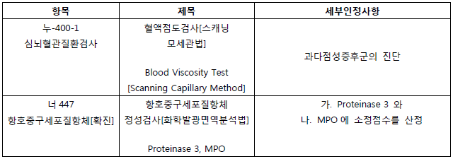1. 신설된 급여목록: 요양급여의 적용기준 및 방법에 관한 세부사항 일부개정에서 표1의 항목이 신설되었습니다. 검체검사료의 각 분류항목별 세부 검사항목이 표2와 같이 방법별로 구체적으로 세분되었습니다.