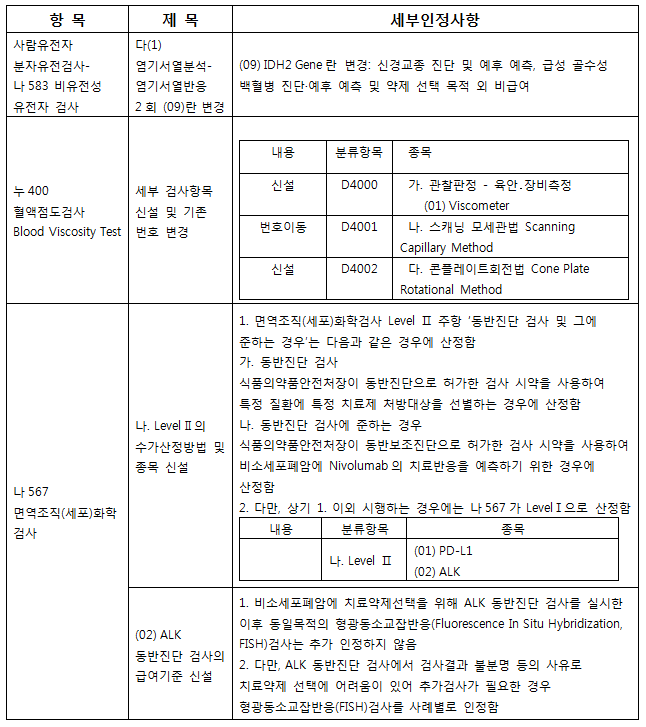 1. 신설 및 변경된 급여목록: 요양급여의 적용기준 및 방법에 관한 세부사항 일부개정에서 아래와 같이 신설되었습니다.