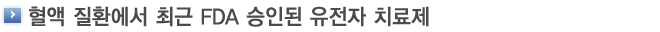 2023년 12월 8일 미국의 식품의약국(Food and Drug Administration, FDA)은 겸상적혈구질환(sickle cell disease, SCD)에 대한 두 개의 유전자 치료제를 승인하였다[1]. 두 치료제 모두 환자의 조혈모세포를 채취한 후 체외에서 SCD를 교정할 수 있는 유전자 조작을 시행한 후 이식하는 방법을 사용한다.